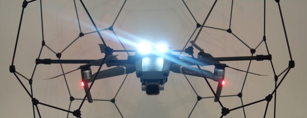 360° ochranná klec s LED světly na "dron DJI Mavic 2":https://dronpro.cz/mavic-2, slouží především pro průmyslovou kontrolu a inspekce v omezeném prostoru. Klec ve tvaru plástve je vyrobena převážně z karbonu, který spolehlivě zabrání poničení stroje při pádu nebo při kolizi. Váha klece sníží letový čas dronu na 22 minut s plně nabitou baterií.
