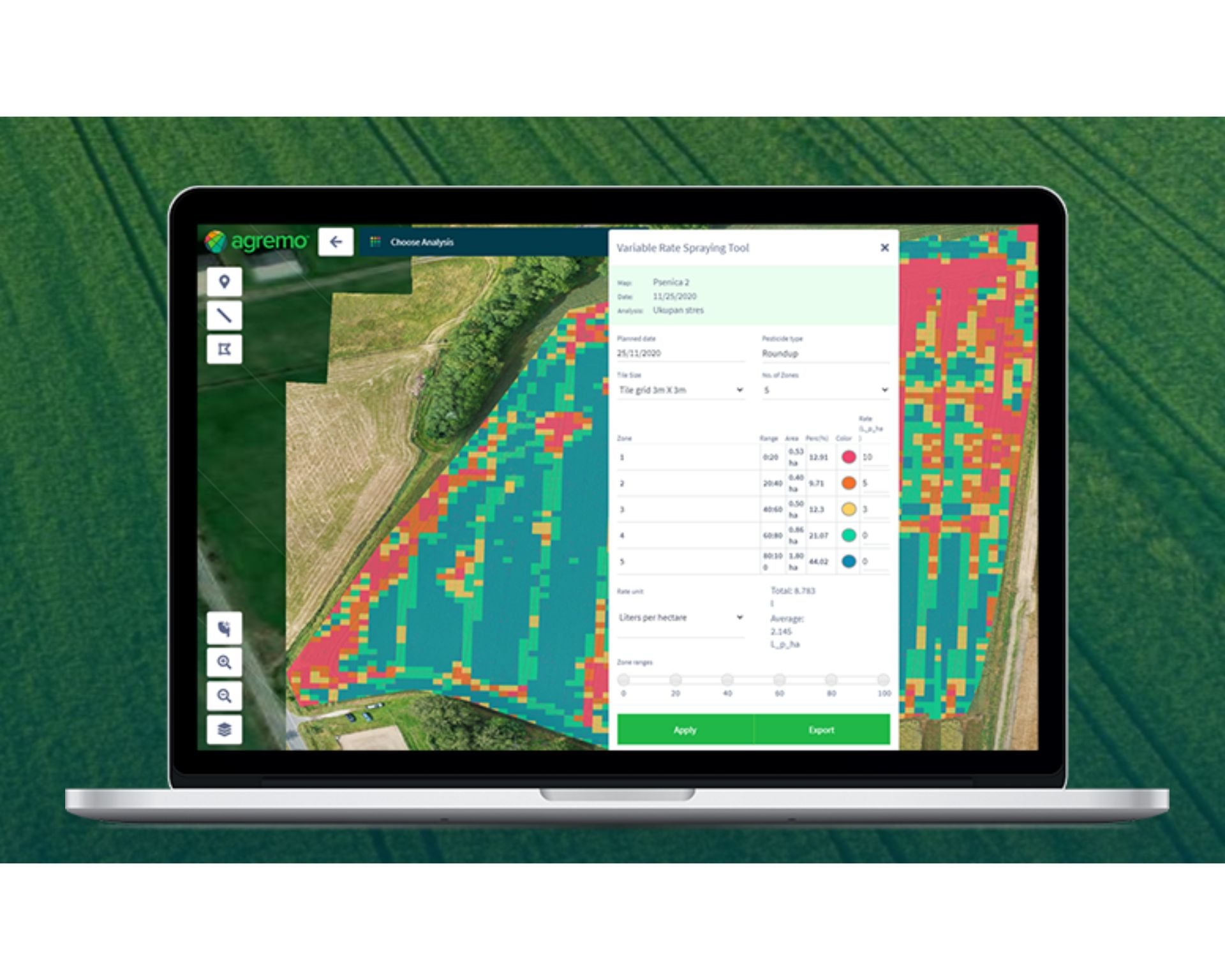 Výsledek? Vizualizované mapy, zóny pro zásahy, zprávy, možnost exportu do formátů (SHP, PDF, KML aj.), a v prémiových balíčcích i doporučení (třeba kam poslat víc hnojiva nebo kde zasáhnout proti plevelu), upozornění a integrace s agrární technikou (např. DJI Agras, John Deere)