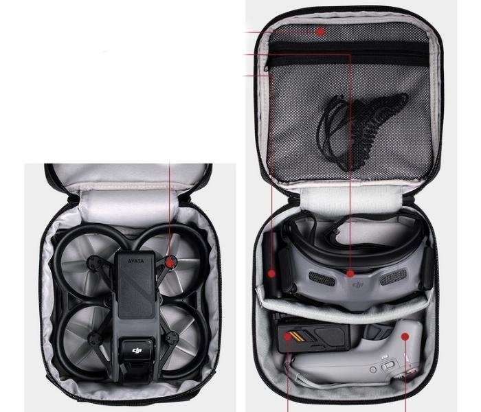Černé pouzdro určené na závodní dron DJI Avata a FPV brýle bude pro vás ten nejlepší parťák na cestách, zvlášť pokud chcete mít vše hezky pohromadě a bezpečně uložené. Pouzdro je uzpůsobeno na přepravu dronu, brýlí Goggles 2, Motion Controlleru, baterie a dalšího drobného příslušenství, které vložíte do kapsy pod víkem.