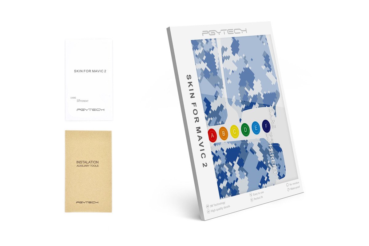 Pimp my drone není žádný pořad z MTV, ale fešácké polepy od borců ze stáje PGYTECH. Balení obsahuje několik listů s jednotlivými díly polepů pro váš dron DJI Mavic 2 a dálkový ovladač. Na výběr máte z několika motivů. Každé balení obsahuje pouze 1 motiv. Polep je zároveň účinná ochrana proti opotřebení.