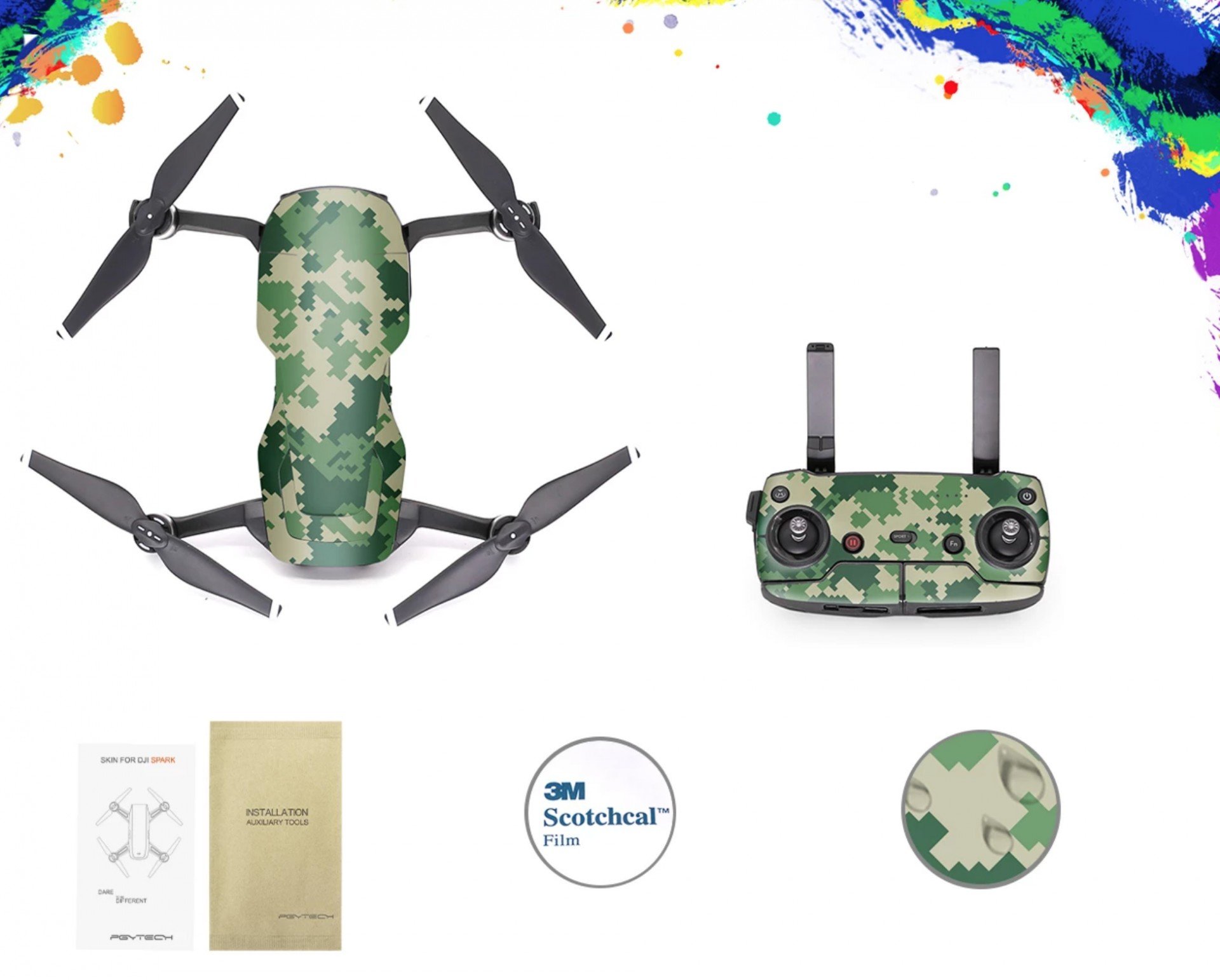Nabušená DJI Mavic Air sada (Standard) příslušenství obsahuje téměř všechno nezbytné příslušenství. V sadě je 50cm přistávací plocha, popruh vysílače, polepy pro dron i dálkový ovladač, přistávací nohy, kryt ovladače a kryt kamery. Verze DJI Mavic Air sada (Pro) obsahuje navíc ještě sadu 6 filtrů.
