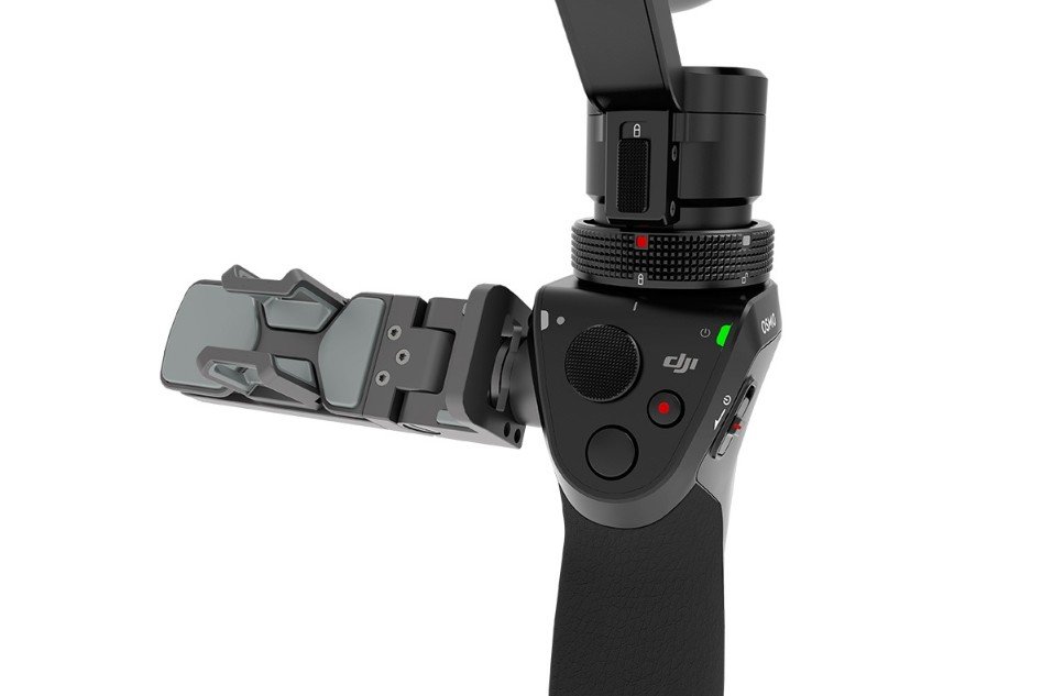Precizně propracovaná rukojeť stabilizátoru DJI Osmo je vyhotovena z materiálů vybíraných s ohledem na jejich odolnost a váš komfort. Tvar úchytu je plně ergonomický a maximálně přizpůsoben anatomii lidské ruky. Tlačítka jsou pečlivě rozmístěna tak, aby byla snadno přístupná a umožňovala přímou volbu prostřednictvím jednoduchého stisknutí palcem. DJI Osmo disponuje držákem pro mobilní zařízení, jehož připojením získáváte přístup ke všem inteligentním pracovním režimům stabilizátoru, na displeji vašeho telefonu se také v reálném čase přehrává právě snímaný obraz.