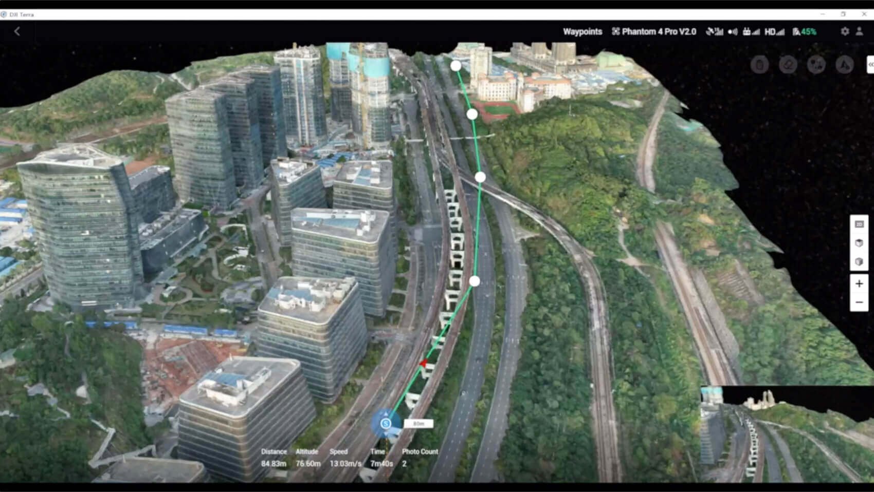 - 3D point cloud v reálném čase při použití s Phantom 4 RTK ovladačem nebo drony Phantom 4 Pro + V2.0 a Phantom 4 Pro V2.0.