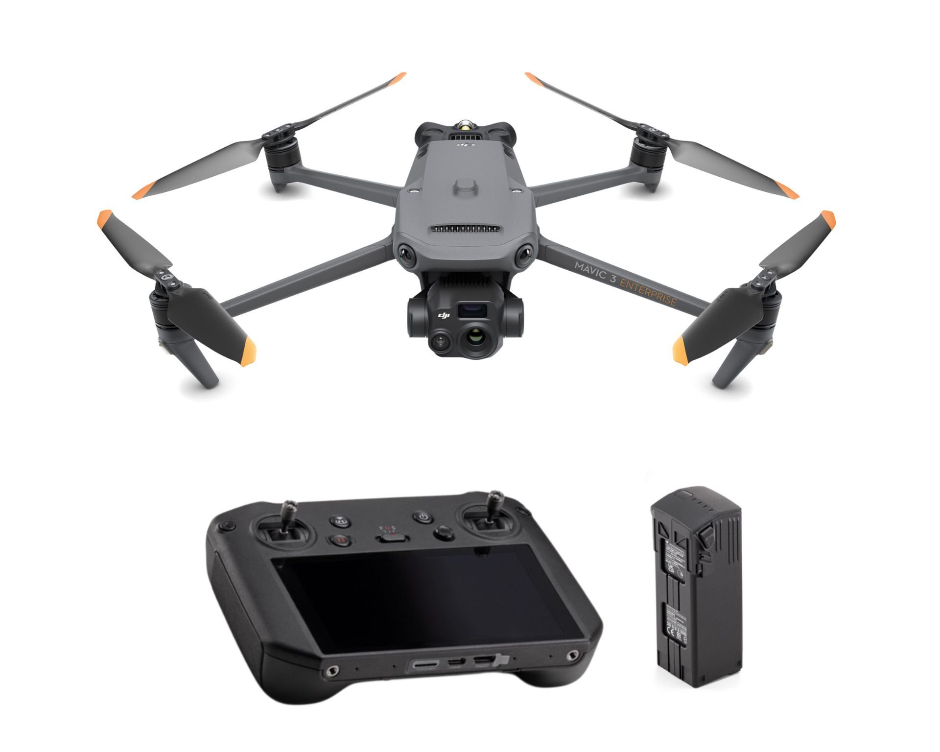 Odolný, spolehlivý a s velkým, vestavěným ultrajasným displejem a mikrofonem – to je nový profesionální ovladač k Mavic 3 Enterprise, RC Pro Enterprise , který najdete v balení spolu s dronem. V něm je nainstalována aplikace DJI Pilot 2. RC Pro Enterprise podporuje převod textu na řeč a můžete ho napojit na přídavný tlampač na dronu. Díky přenosové technologii DJI O3 Enterprise Transmission je o stabilitu signálu a plynulý přenos obrazu postaráno, a to až na 15 km (8 km CE). Ovladač podporuje i 4G přenos a vydrží v provozu na jedno nabití zhruba 3 hodiny. Uvnitř se také skrývá 64 GB interní paměti, kterou můžete rozšířit SD kartou.