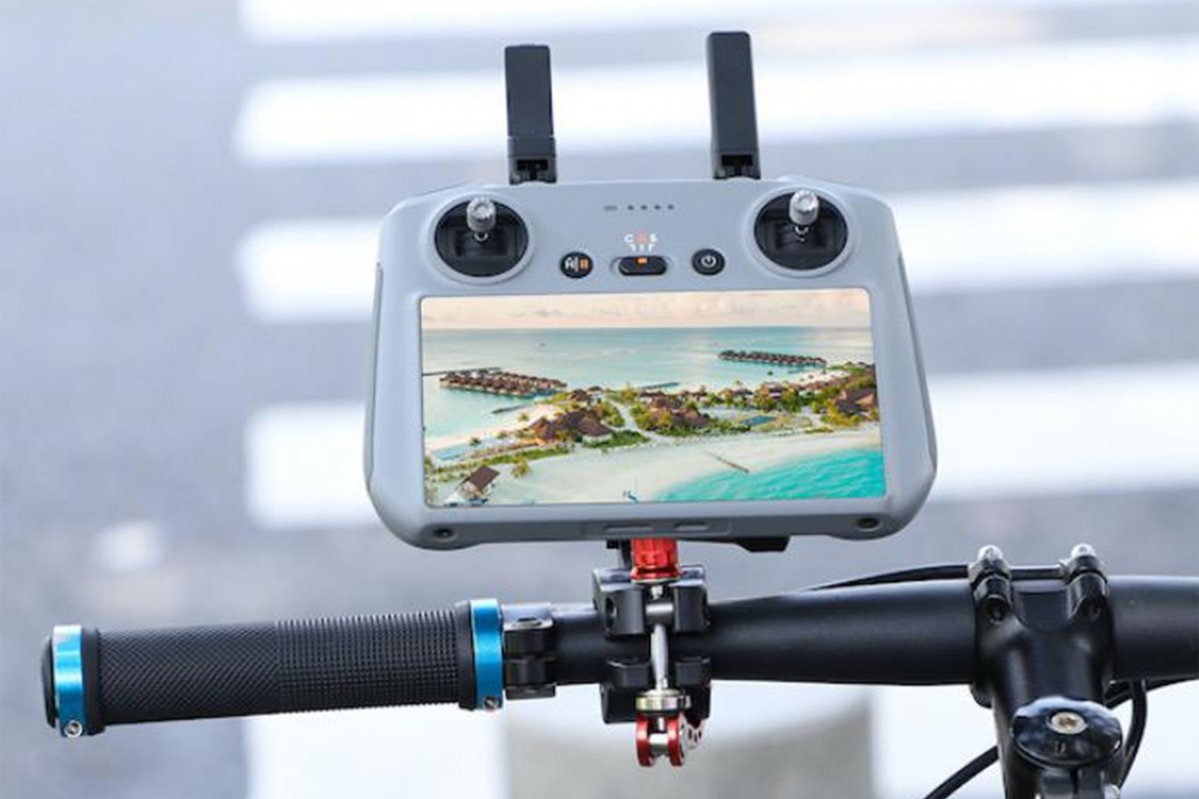 Chcete pořizovat ty nejlepší záběry na kole s funkcí Active track, ale nevíte kam dát váš dálkový ovladač DJI RC? Pořiďte si držák na kolo, se kterým umístíte DJI RC 2 (není kompatibilní s DJI RC) na řídítka vašeho kola. Dálkový ovladač připevníte k držáku pomocí šroubků, které našroubujete do závitů na spodní straně ovladače. Držák navíc můžete využít i na akční kameru.