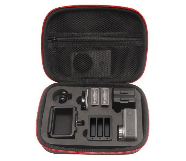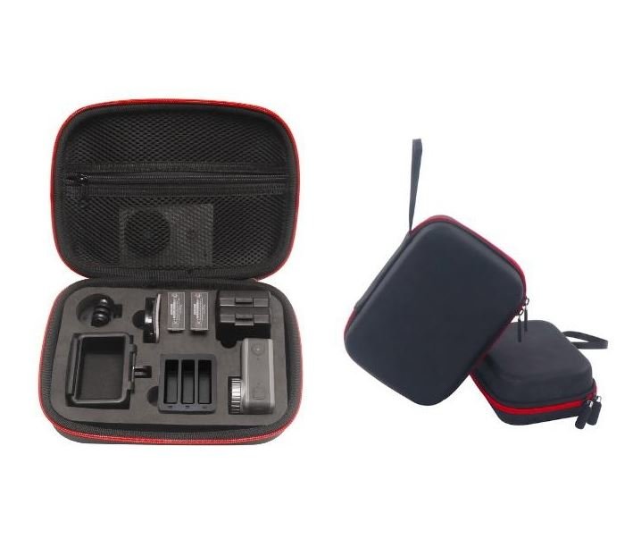 Pevný voděodolný kufr je určený na přepravu akční kamery DJI Osmo Action. Rozměry kufru jsou 21 x 16 x 8 cm, je vyroben z odolného materiálu, uvnitř vybaven EVA pěnovou výplní a váží pouze 261 gramů. Do kufru uložíte Osmo Action, nabíjecí stanici, rám, tři baterie, závit, kabely a další drobné příslušenství.