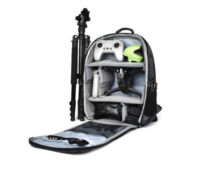 Cestujte s vaším DJI FPV závodním dronem pěkně zabaleným v nylonovém batohu, který navíc odolá i kapkám deště. Batoh je vybaven nastavitelnými přepážkami, které si nastavíte tak jak potřebujete, takže batoh nemusíte využívat jen na přepravu dronu, ale například i vaší fototechniky nebo jiných dronů.