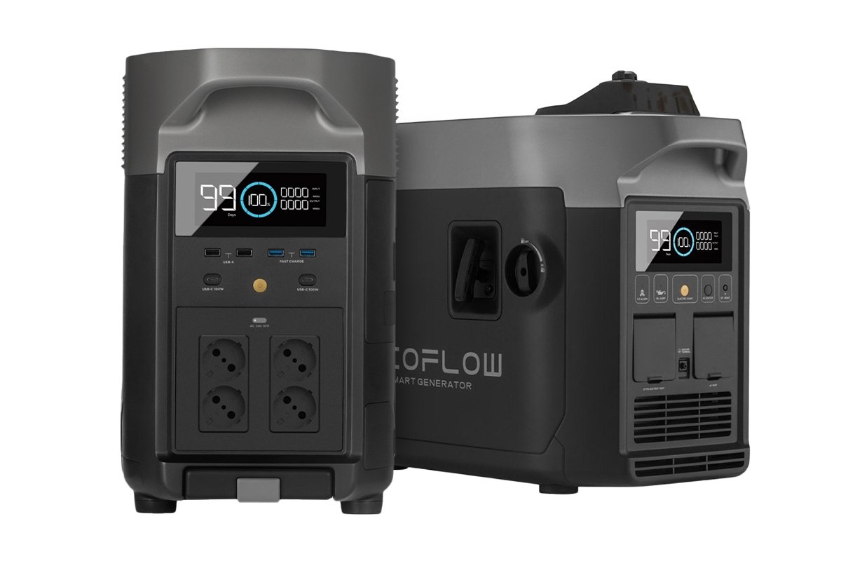 Pokud chcete využít stanici EcoFlow jako záložní zdroj energie pro domácnost, budete potřebovat ještě inteligentní generátor (EcoFlow Smart generator), který stanici pravidelně automaticky nabíjí, aby byla při black-outu ready. Automaticky se spustí, když stanice DELTA Pro dosáhne nízké úrovně nabití, dobije ji a sám se opět vypne. Ve srovnání s běžnými generátory se spalovacím motorem přináší inteligentní generátor EcoFlow menší ztráty energie, rychlejší dobíjení a vyšší účinnost.