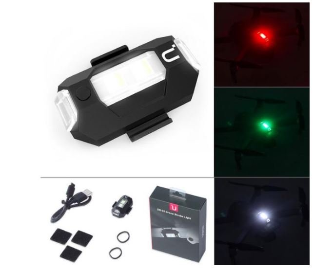 Posviťte si na noční přelety s novým blikajícím LED světlem a vyšperkujte tak váš dron. Světlo má dobíjecí baterii, kterou dobijete přibližně za 60 minut a vydrží nabité 8 hodin, jeho viditelnost je až 3 km, váží pouze 6,5 gramů, svítí červeně, zeleně nebo bíle a bliká buď pomalu nebo se stroboskopickým efektem.