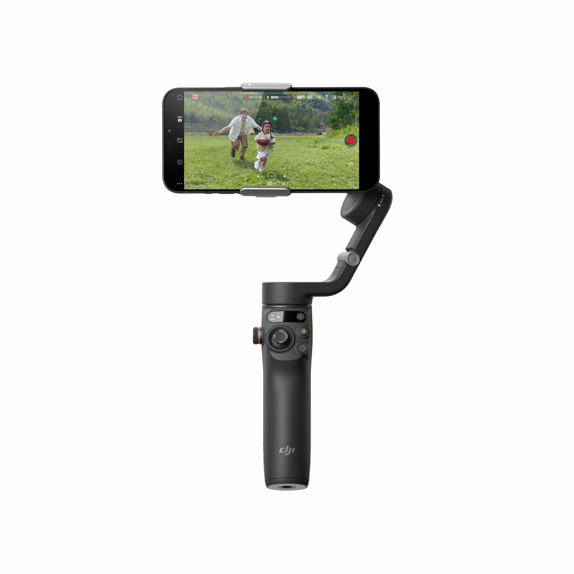 Stabilizátor na mobil Osmo Mobile 6 se automaticky zapne, jakmile jej rozložíte. Zaklapněte spárovaný smartphone a automaticky se objeví aplikace DJI Mimo.