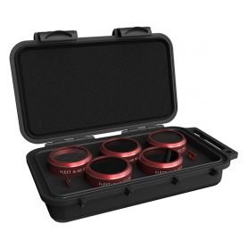 Pětidílná sada filtrů pro dron DJI Phantom 4 obsahuje polarizační filtr, ND4, ND8, ND16 a filtr STAR. Polarizační filtr sníží oslnění a zvýší sytost barev, ND4 využijete při západu/východu slunce, ND8 při polojasnu, ND16 při jasném slunci a filtr STAR je určený pro projasnění světelných bodů ve tmě.
