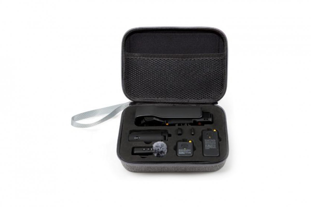 Malé šedé pouzdro, které je navrženo na DJI Osmo Pocket 3, je uvnitř vybaveno pěnovou výplní, takže se nemusíte bát škrábanců a díky praktickému poutku na vnější straně ho můžete připnout třeba k batohu. Do pouzdra uložíte DJI Osmo Pocket 3 v ochranném krytu, mikrofon, tripod, základnu a do kapsy pod víkem další drobné příslušenství.
