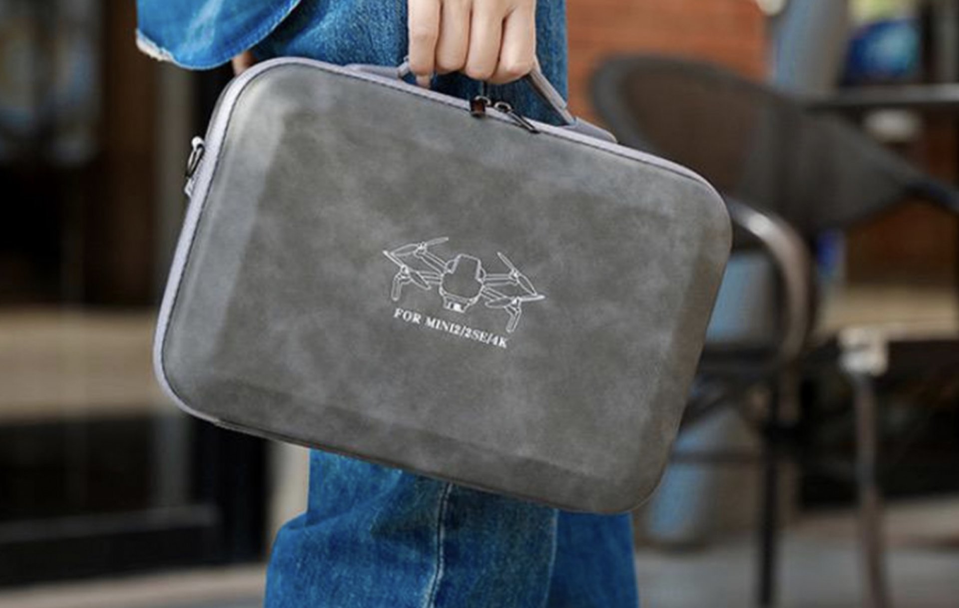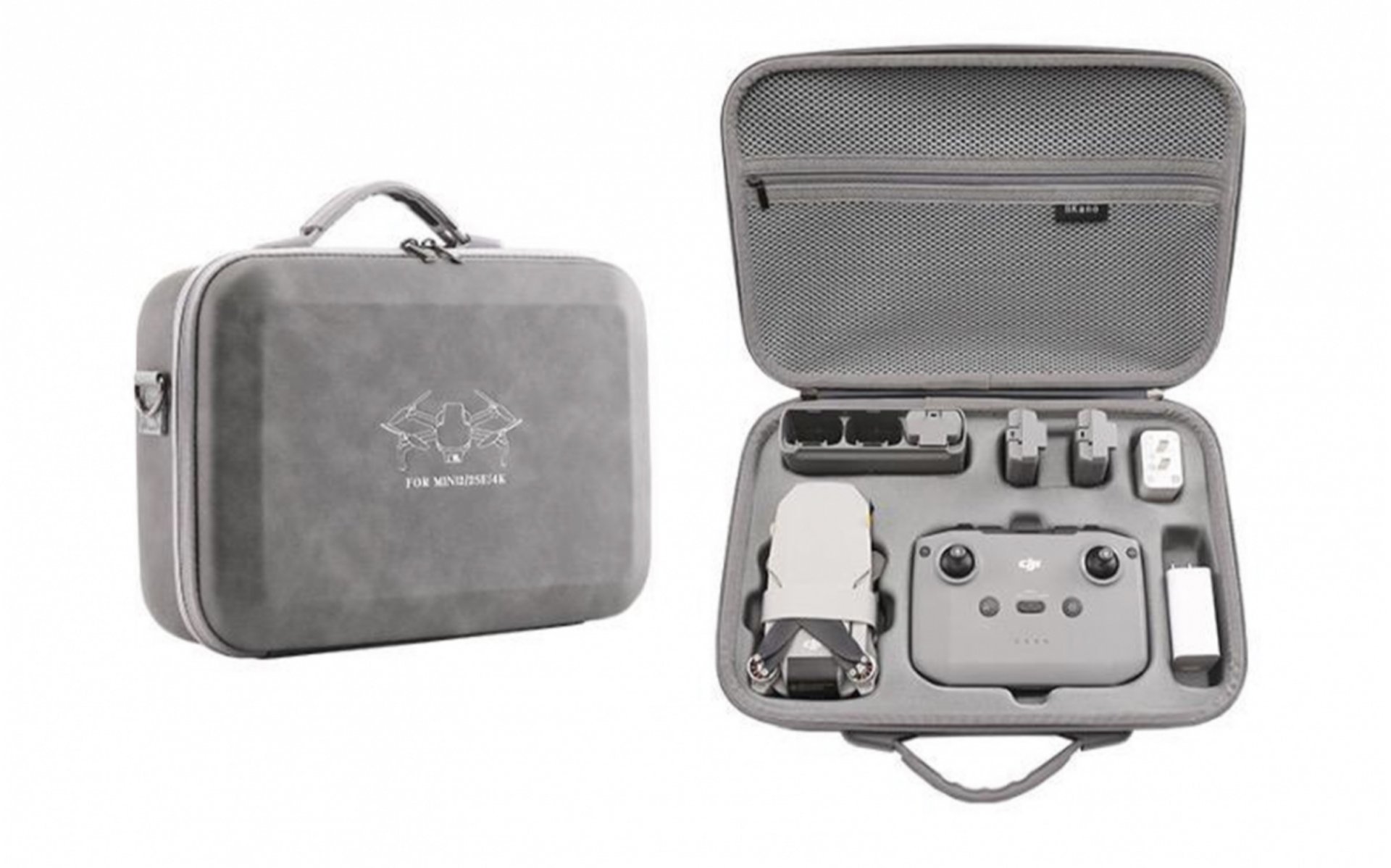 Podrobný popis Podrobný popis Šedé pouzdro na dron DJI Mini 2 / Mini 4K / Mini 2 SE s popruhem přes rameno