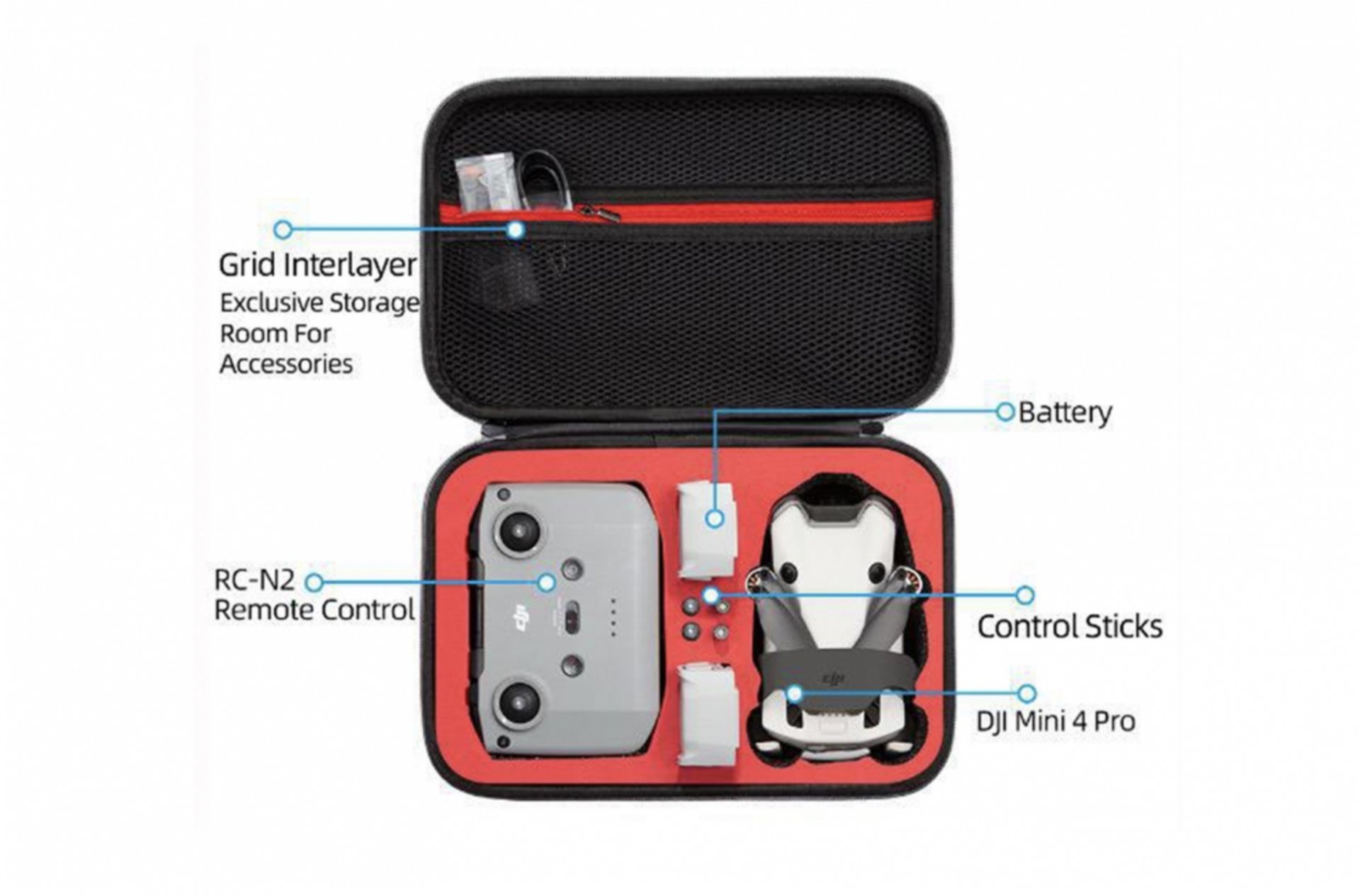 Podrobný popis Podrobný popis Šedé pouzdro na dron DJI Mini 4 Pro + RC-N2