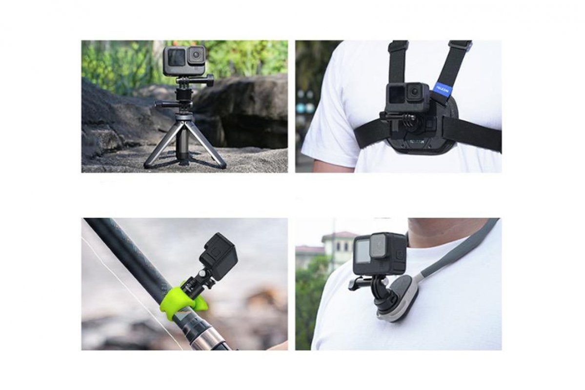 Flexibilní silikonový páskový držák, je navržen pro upevnění na tyče o průměru 22 mm až 38 mm. Jeho síťové otvory ve vzdálenosti 45 mm až 60 mm a maximální nosnost 300 g umožňují bezpečné a stabilní uchycení akčních kamer pro vertikální i horizontální snímání. Držák je vybaven rychloupínacím adaptérem, což usnadňuje rychlé připojení a odpojení kamery, což je ideální pro rychle se měnící scény a dynamické akce.