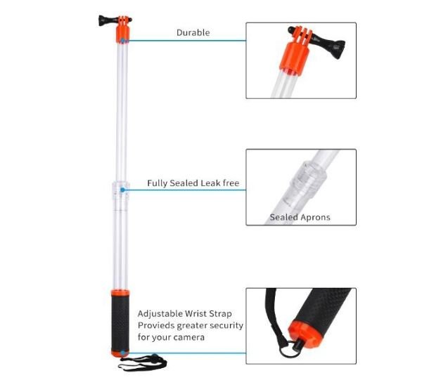Parametry Voděodolná prodlužující tyč na akční kameru