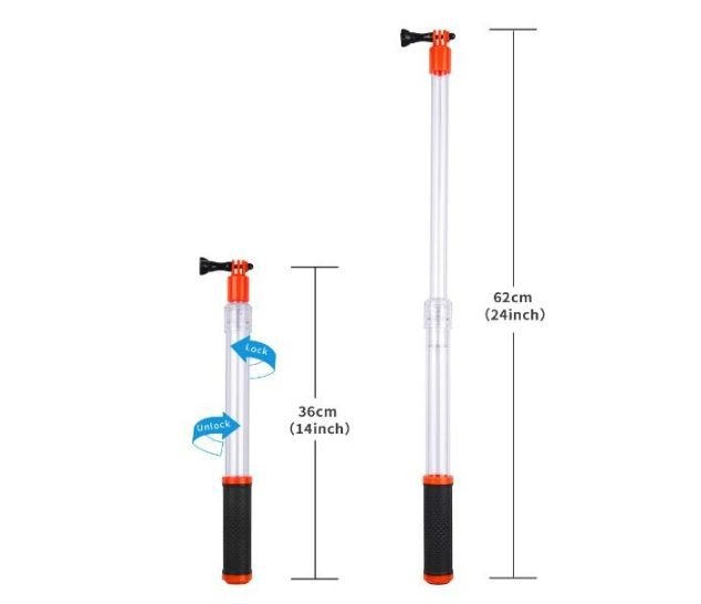 Chystáte se do víru vln? Pořiďte si voděodolnou prodlužující tyč se kterou natočíte všechna vaše podvodní dobrodružství. Tyč natáhnete od 36 cm do 62 cm a je kompatibilní s akčními kamerami Osmo Action / 2 / 3 / 4 / 5 Pro, Insta360 nebo GoPro. Součástí balení je navíc zajišťovací šroub a poutko na ruku.