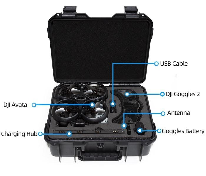 Odolný kufr o rozměrech 33 x 27 x 12,5 cm je určen pro FPV dron DJI Avata a Goggles 2 (není určen pro Goggles V2). Kufr odolá kapkám deště i vlhkosti a vložíte do něj včetně dronu a FPV brýlí i Motion Controller, dvě baterie, jednu baterii k brýlím, nabíjecí stanici, potřebné kabely a antény.