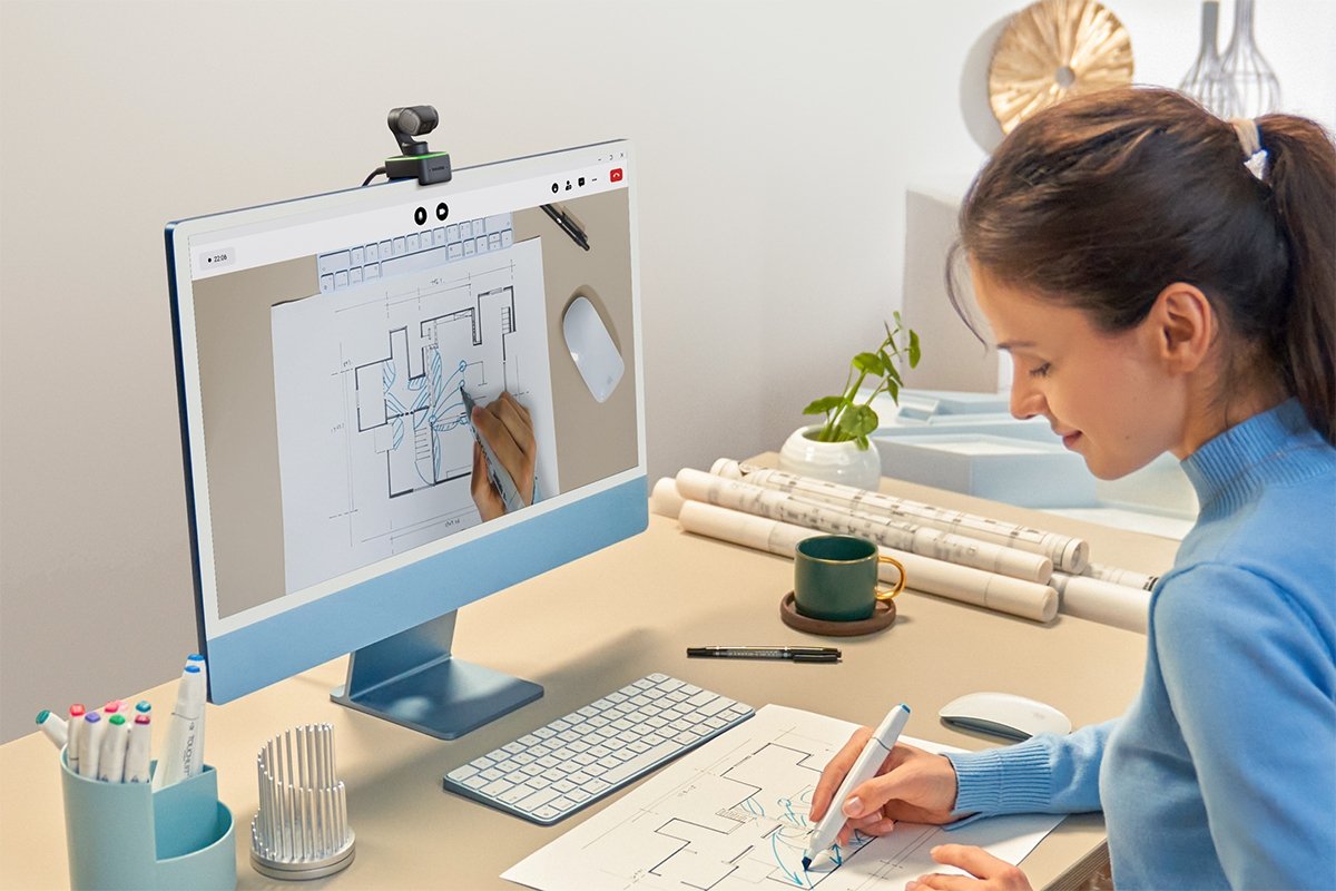 Pouhým pohybem ruky můžete aktivovat umělou inteligenci webkamery a její trackování, můžete přiblížit a oddálit záběr nebo aktivovat White Board mode.