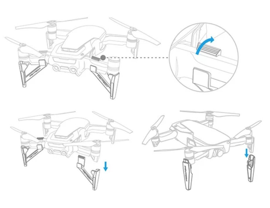 Preventivní ochrana podvozku je velmi důležitá. Pilot nikdy neví, zda-li nebude muset nouzově přistát někde na nerovném povrchu. Pro všechny případy jak vzletů z nerovného terénu, tak i přistání je ideální prevence v podobě DJI Mavic Air zvýšené přistávacích nohou. Nasazení je snadné a zabere sotva minutu.